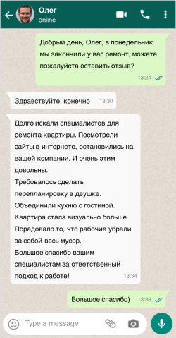Клиент сможет оплатить работу наличным или безналичным расчётом. Вносить деньги следует поэтапно. Количество этапов указано в документе. Сделать ремонт зала, кухни, спальни, ванной комнаты и туалета по приемлемой цене легко, достаточно обратиться в нашу организацию.